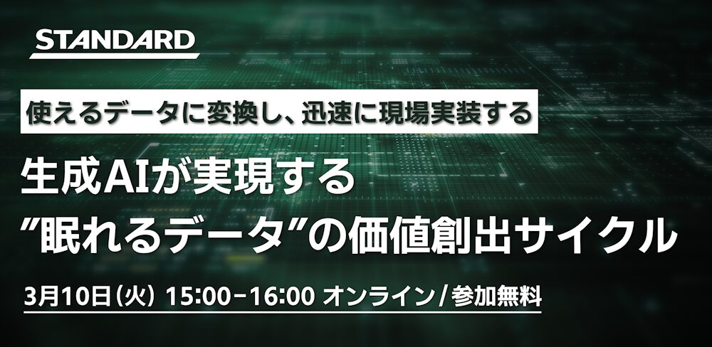 リアルタイム 生成AIが実現する、”眠れるデータ”の価値創出サイクル ~使えるデータに変換し、迅速に現場実装する~ 2026年3月10日(火)15:00~16:00 ~生成AIで社内の“眠れるデータ”を“使えるナレッジ資産”へ変換して 現場に実装するための具体プロセ... セミナー詳細を見る
